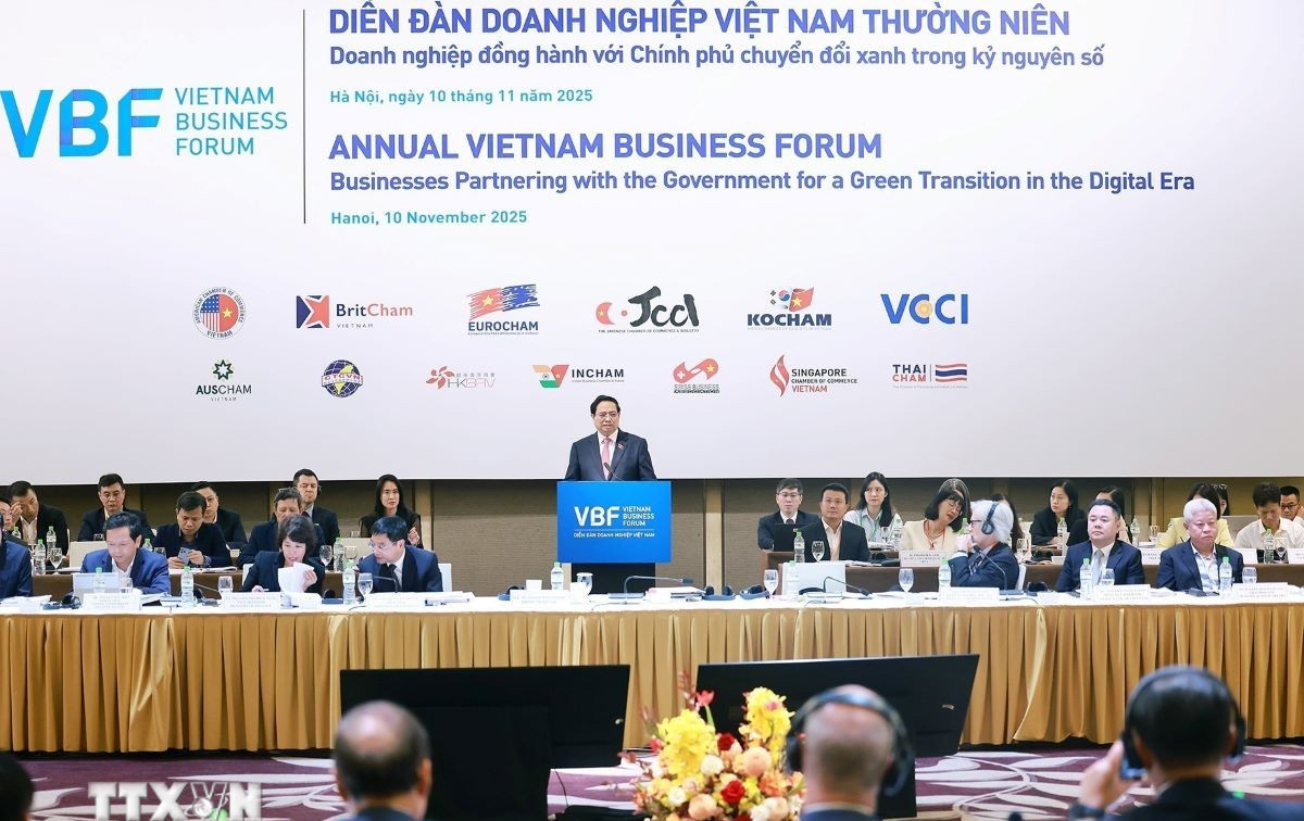 Ngày 10/11, tại Hà Nội, Thủ tướng Chính phủ Phạm Minh Chính dự và phát biểu tại Diễn đàn Doanh nghiệp Việt Nam thường niên năm 2025 với chủ đề "Doanh nghiệp đồng hành với Chính phủ chuyển đổi xanh trong kỷ nguyên số".