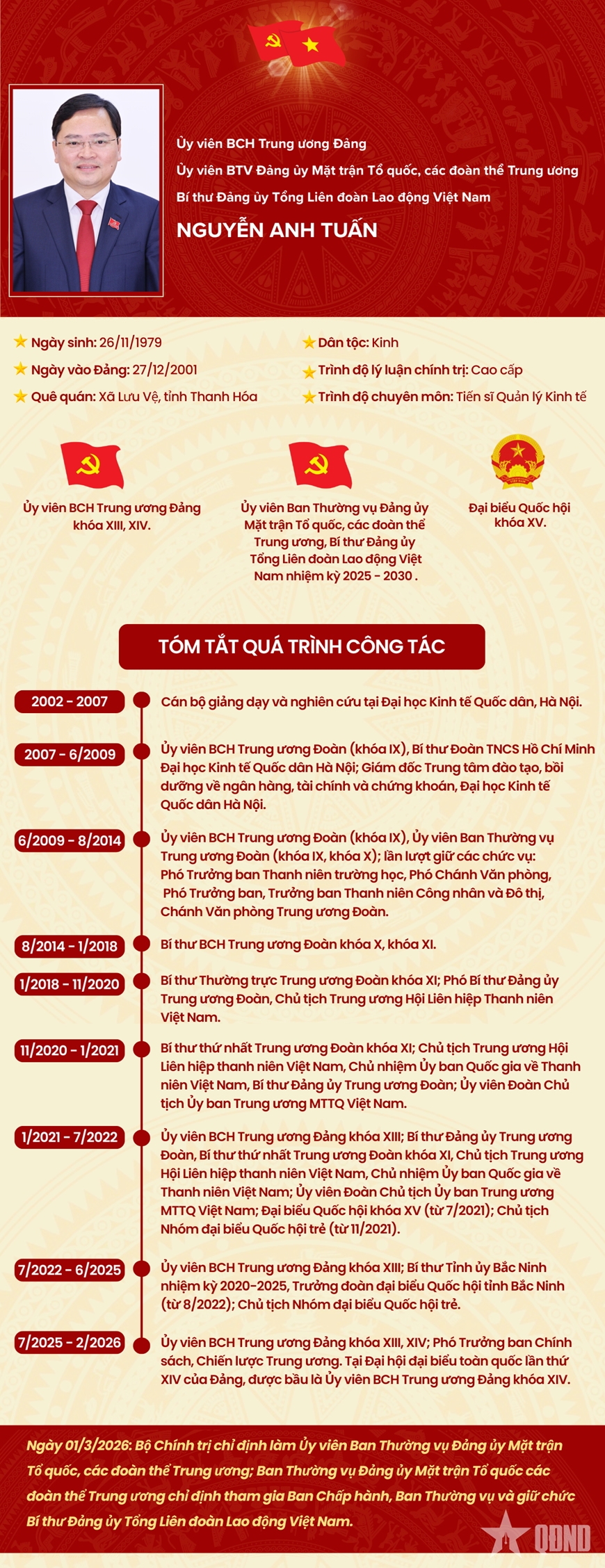 Đồng chí Nguyễn Anh Tuấn được chỉ định làm Bí thư Đảng ủy Tổng Liên đoàn Lao động Việt Nam