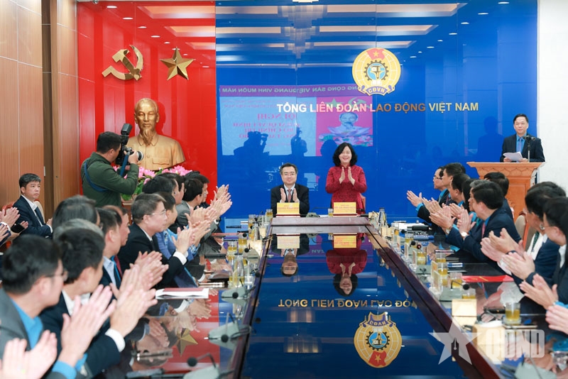 Phát biểu chúc mừng đồng chí Nguyễn Đình Khang và đồng chí Nguyễn Anh Tuấn đã được Bộ Chính trị tin tưởng, giao nhiệm vụ trên các cương vị mới, đồng chí Bùi Thị Minh Hoài bày tỏ mong muốn đồng chí Nguyễn Anh Tuấn cùng tập thể Ban Chấp hành, Ban Thường vụ Đảng ủy Tổng Liên đoàn lao động Việt Nam tiếp tục quán triệt, triển khai hiệu quả Nghị quyết Đại hội Đảng lần thứ XIV và các nghị quyết của Trung ương về xây dựng giai cấp công nhân và đổi mới tổ chức, hoạt động Công đoàn; đẩy mạnh ứng dụng khoa học, công nghệ và chuyển đổi số trong hoạt động Công đoàn; đổi mới phương thức tuyên truyền, vận động đoàn viên; phát huy sức mạnh các phong trào thi đua yêu nước, khơi dậy khát vọng cống hiến, sáng tạo của đội ngũ cán bộ, viên chức, công nhân, người lao động, góp phần thực hiện mục tiêu tăng trưởng 2 con số trong năm 2026 và những năm tiếp theo.