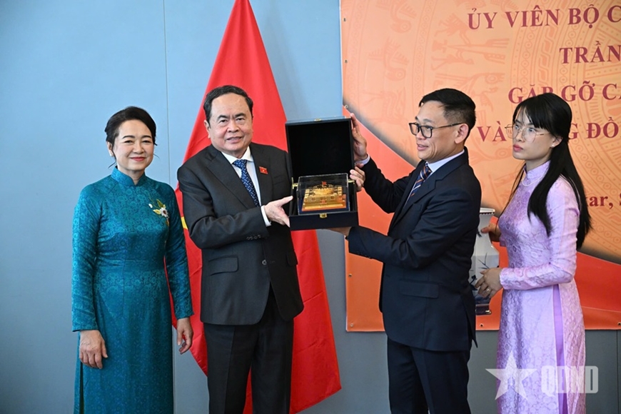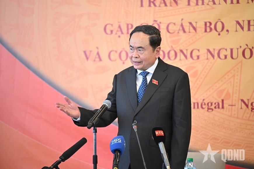 Thay mặt lãnh đạo Đảng, Nhà nước, Chủ tịch Quốc hội Trần Thanh Mẫn gửi tới Đại sứ, các cán bộ Đại sứ quán và toàn thể bà con cộng đồng người Việt Nam tại Senegal lời thăm hỏi nồng ấm và lời chúc tốt đẹp nhất từ quê hương Việt Nam.
