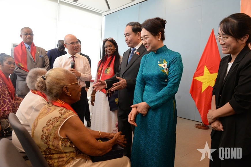 Trong khuôn khổ chuyến thăm chính thức Cộng hòa Senegal, chiều 22-7 (theo giờ địa phương), Chủ tịch Quốc hội Trần Thanh Mẫn và Phu nhân Nguyễn Thị Thanh Nga cùng Đoàn đại biểu cấp cao Việt Nam đã gặp gỡ cán bộ, nhân viên Đại sứ quán Việt Nam tại Senegal và cộng đồng người Việt Nam tại Senegal.