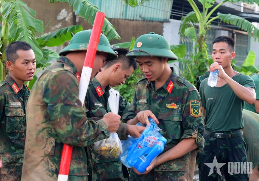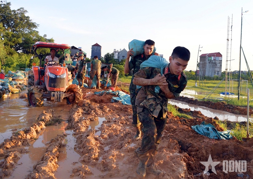 Từ lúc 2 giờ, nhận được "mệnh lệnh cứu dân", hàng trăm cán bộ, chiến sĩ Bộ CHQS tỉnh Bắc Ninh, Lữ đoàn Công binh 575 và Trung đoàn 2, Sư đoàn 3 (Quân khu 1) đã khẩn trương điều động lực lượng, xuồng máy cơ động vào vùng lũ. Liên tục gần 20 giờ dầm mình trong nước, cán bộ, chiến sĩ tham gia cứu hộ, cứu nạn đã không quản hiểm nguy, len lỏi vượt qua các chướng ngại vật để tiếp cận từng hộ dân, ưu tiên sơ tán người già, trẻ nhỏ đến nơi an toàn. Với tinh thần "hết mình vì dân", các chiến sĩ đã mang lại sự yên tâm, cảm kích sâu sắc cho người dân nơi đây. Hình ảnh các anh bộ đội cùng người dân vượt qua khó khăn trong mưa lũ đã khắc sâu tình quân dân bền chặt.