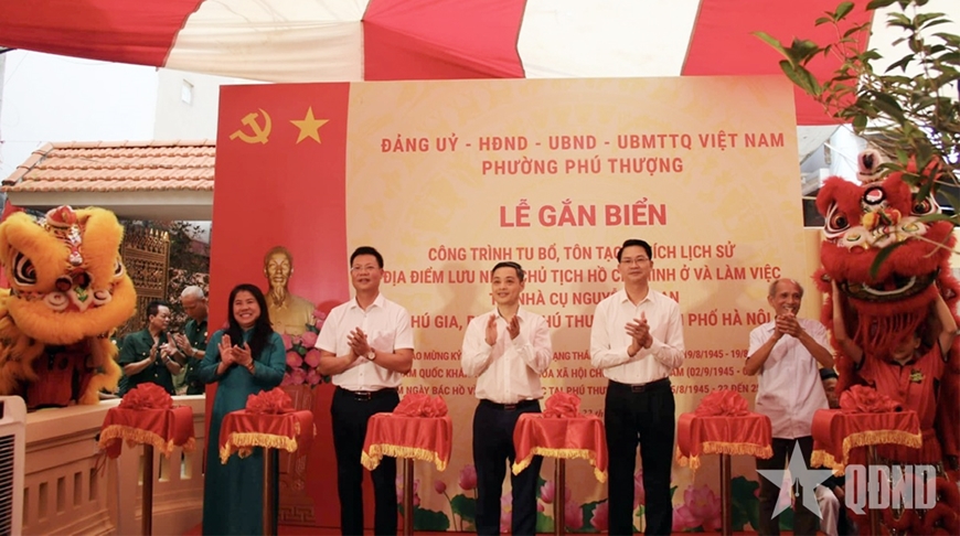 Sáng 22-8, tại phường Phú Thượng (TP Hà Nội), Đảng ủy, HĐND, UBND, UBMTTQ phường Phú Thượng tổ chức lễ gắn biển công trình tu bổ, tôn tạo Di tích lịch sử địa điểm lưu niệm Chủ tịch Hồ Chí Minh ở và làm việc tại nhà cụ Nguyễn Thị An.