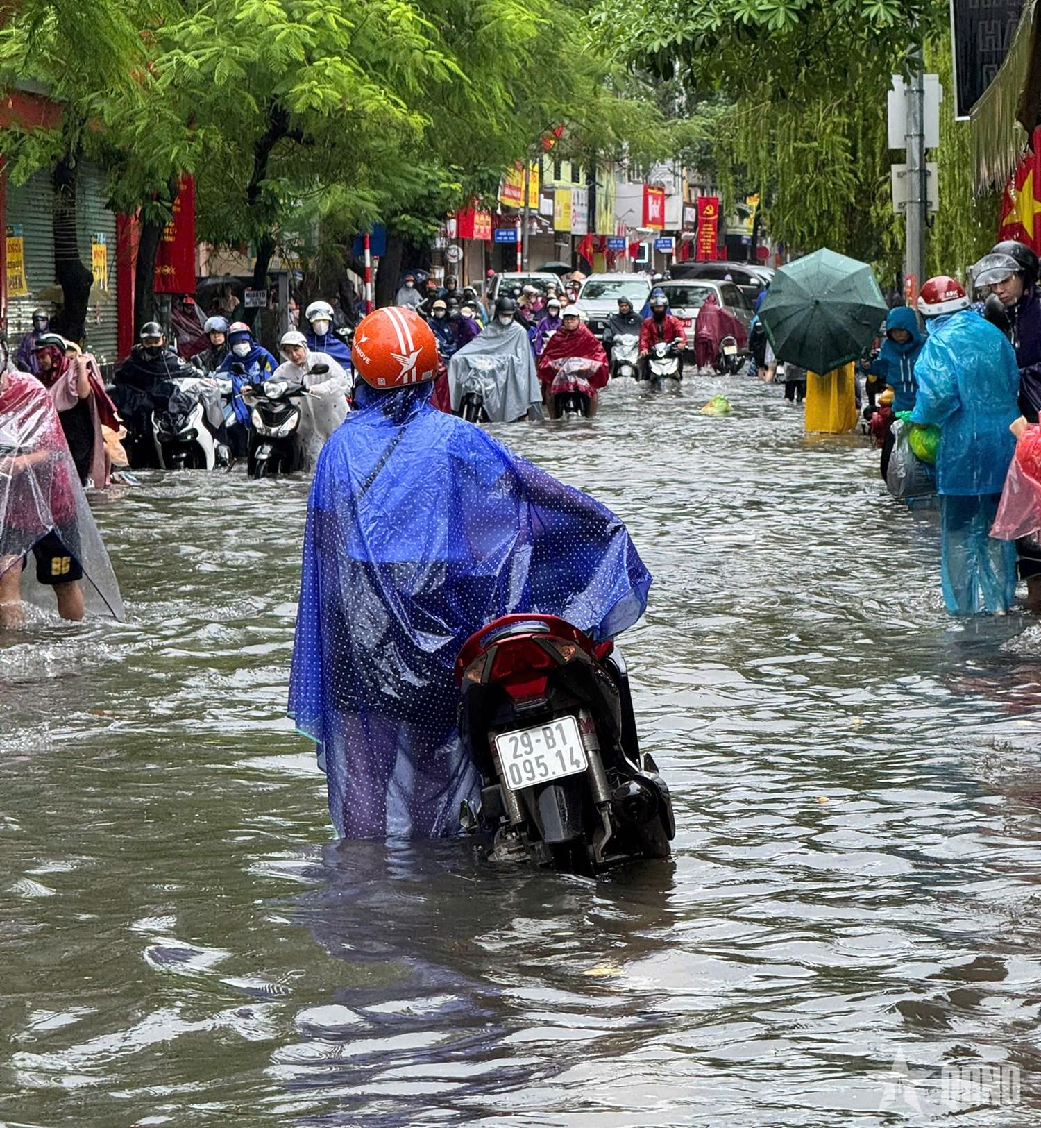 | Mưa ngập trên phố Nguyễn An Ninh. |
