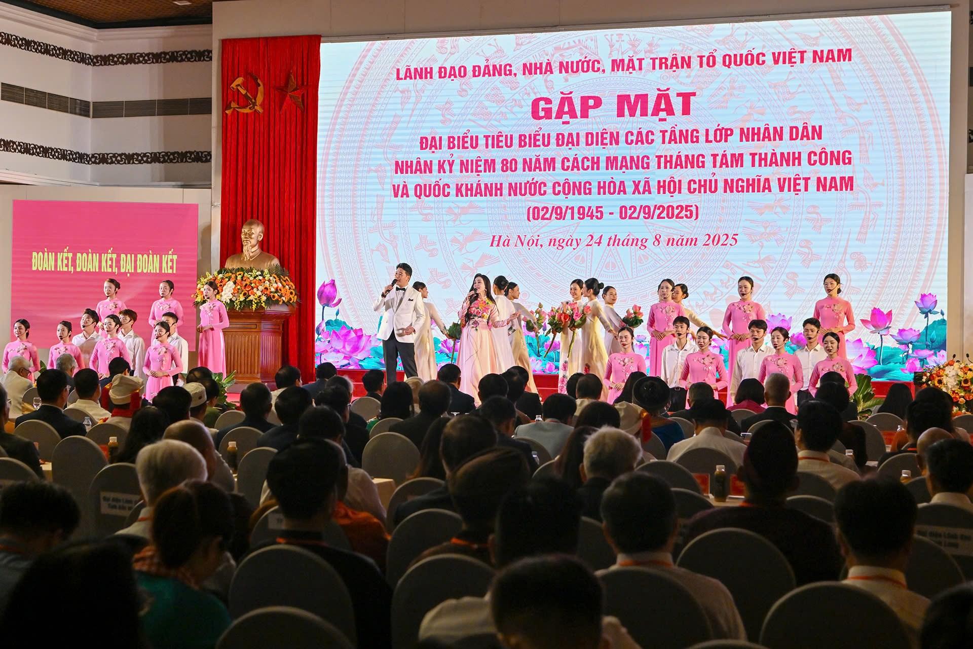 Sáng 24-8, tại Trung tâm Hội nghị Quốc tế (TP Hà Nội), Ủy ban Trung ương Mặt trận Tổ quốc Việt Nam tổ chức hội nghị lãnh đạo Đảng, Nhà nước, Mặt trận Tổ quốc Việt Nam gặp mặt đại biểu tiêu biểu đại diện các tầng lớp nhân dân nhân kỷ niệm 80 năm Cách mạng Tháng Tám và Quốc khánh 2-9.