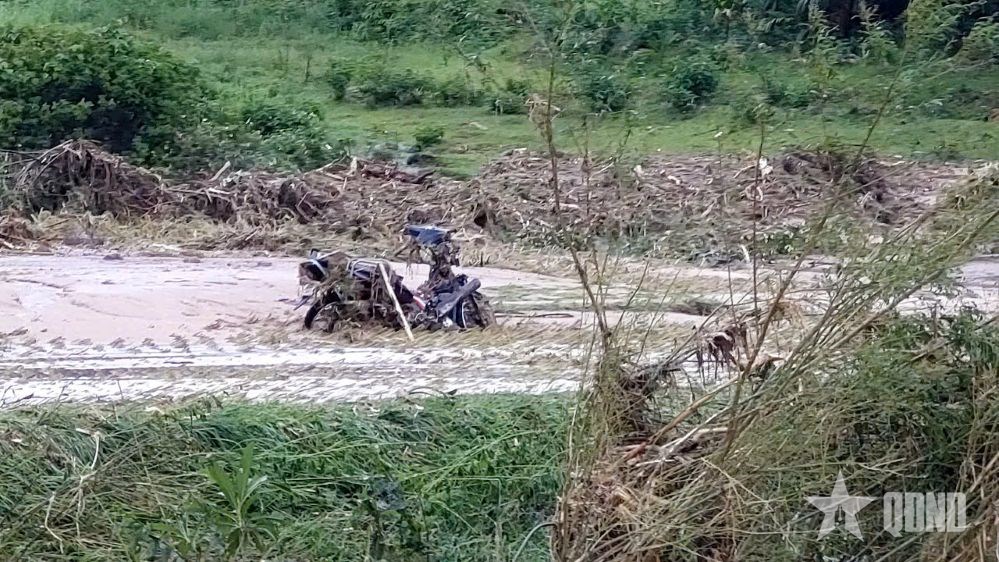 | Một chiếc xe máy của người dân bị cuốn trôi. |