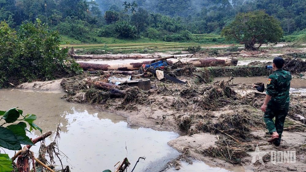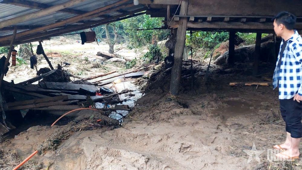 | Lũ quét bất ngờ tràn xuống trong đêm tàn phá bản biên giới. |
