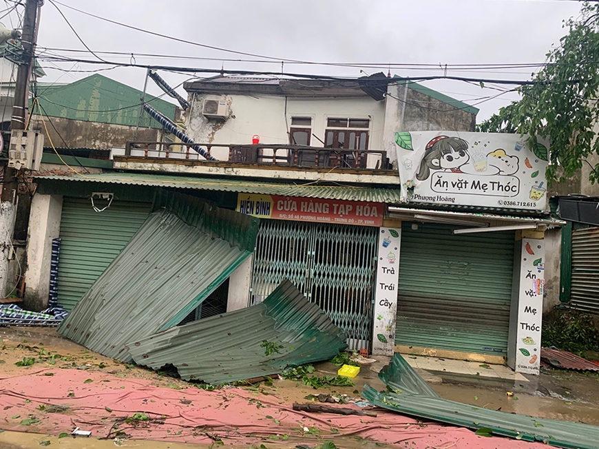 | Bão số 5 làm hư hại nhiều nhà cửa. |