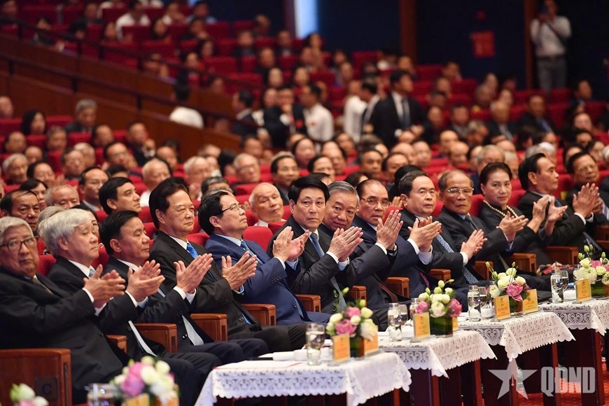 | Các đồng chí lãnh đạo, nguyên lãnh đạo Đảng, Nhà nước tham dự chương trình gặp mặt. |