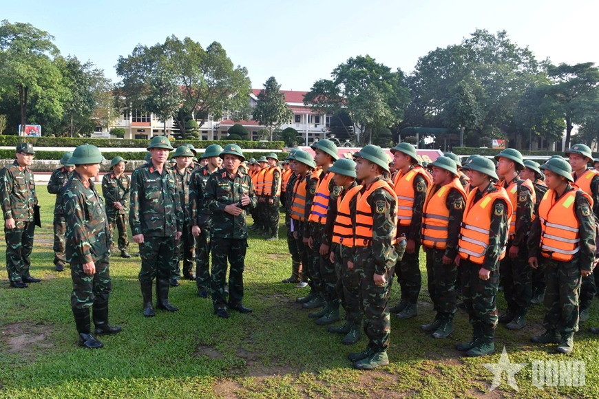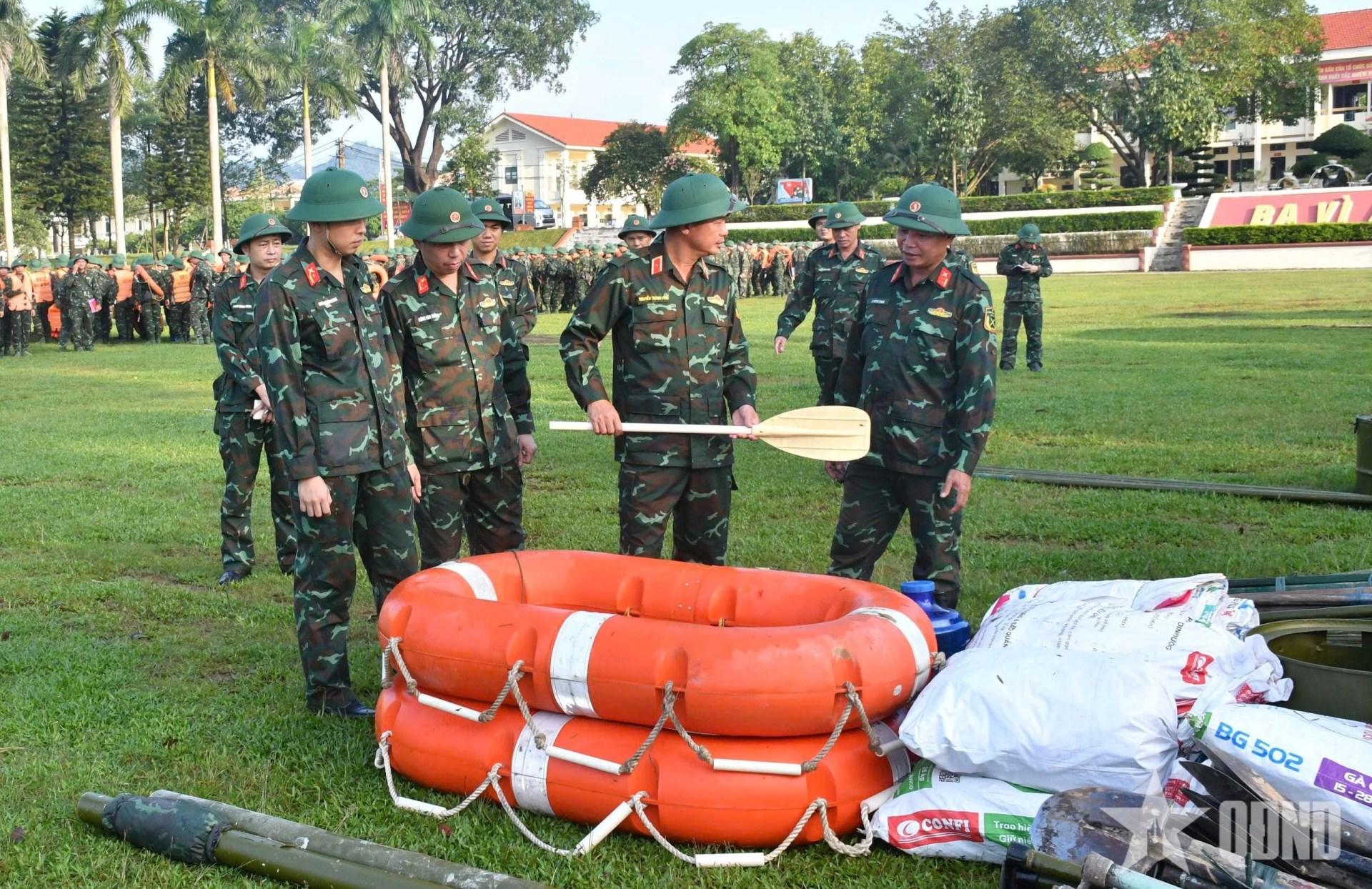 Đoàn công tác Quân đoàn 12 kiểm tra trang bị cứu hộ, cứu nạn của Sư đoàn 312. Ảnh: Quân đoàn 12 cung cấp |