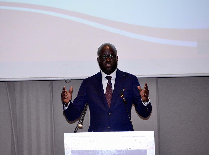 | Chủ tịch Quốc hội Senegal Malick Ndiaye phát biểu tại tọa đàm. |