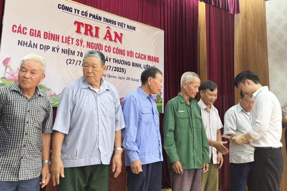 Tại buổi lễ, ông Phạm Hữu Hải – Phó Tổng Giám đốc Công ty Cổ phần TNH99 Việt Nam bày tỏ lời tri ân sâu sắc tới các thế hệ cha anh đã hy sinh xương máu vì nền độc lập của dân tộc và trao tặng 200 suất quà, mỗi suất quà trị giá 1.000.000 đồng. Tổng giá trị quà tặng là 200.000.000 đồng. Dù giá trị vật chất không quá lớn, nhưng mỗi phần quà là tấm lòng thành kính, là sự tri ân sâu sắc của Công ty Cổ phần TNH99 Việt Nam đối với những người đã cống hiến tuổi xuân, máu xương và cả những hy sinh thầm lặng cho độc lập, tự do của Tổ quốc.