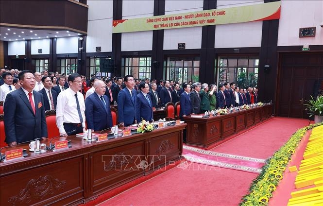 | Thủ tướng Phạm Minh Chính và các đại biểu tham dự Đại hội thực hiện nghi lễ chào cờ. |