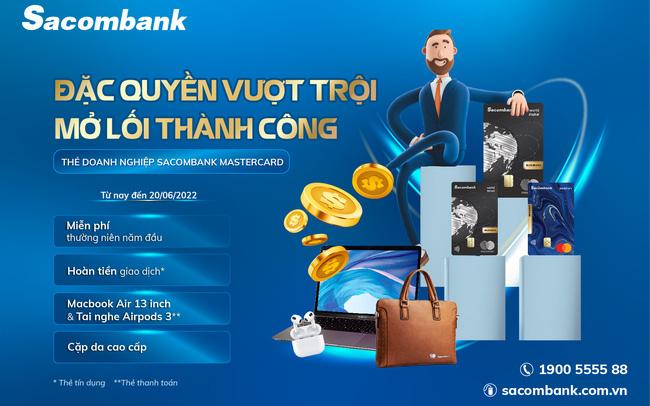 Nhân dịp ra mắt, chủ thẻ doanh nghiệp Sacombank Mastercard còn được tham gia chương trình khuyến mại "Đặc quyền vượt trội – Mở lối thành công" từ ngày 20/01/2022 đến 20/06/2022. Theo đó, tất cả khách hàng mở mới thẻ doanh nghiệp Sacombank Mastercard sẽ được miễn phí thường niên năm đầu; trong đó, 400 khách hàng đầu tiên sẽ nhận được quà tặng cặp da cao cấp.