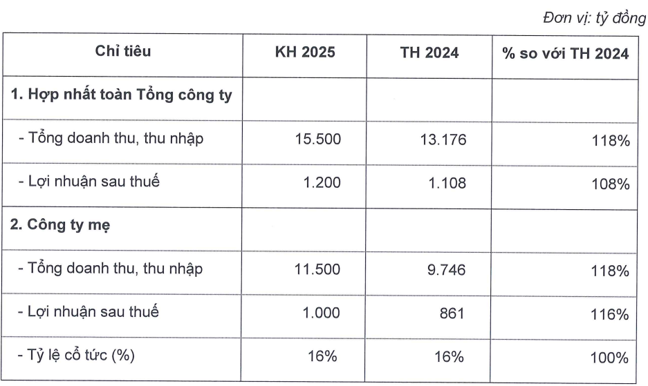Về phương án phân phối lợi nhuận năm 2025, Vinaconex cũng lên kế hoạch duy trì mức chia cổ tức với tỷ lệ 16%.