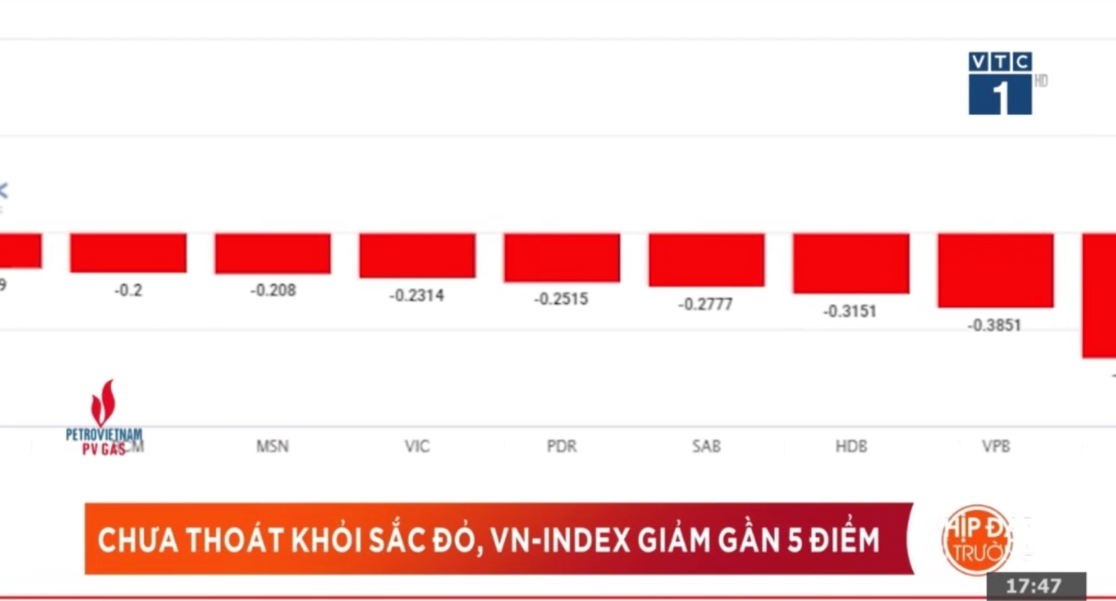 VN-Index mở cửa phiên chiều ngày 02/10 với lực bán chiếm ưu thế mặc cho lực cầu có xuất hiện trở lại nhưng chỉ khiến cho tình trạng giằng co dưới mức tham chiếu kéo dài đến hết phiên và chỉ số đóng cửa trong sắc đỏ. Thông tin được đăng tải trong số phát sóng cùng ngày của chương trình “Nhịp đập thị trường” phát sóng từ Thứ Hai đến Thứ Sáu hàng tuần trên kênh VTC1, chương trình có sự đồng hành của Tổng Công ty Khí Việt Nam – CTCP (PV GAS).