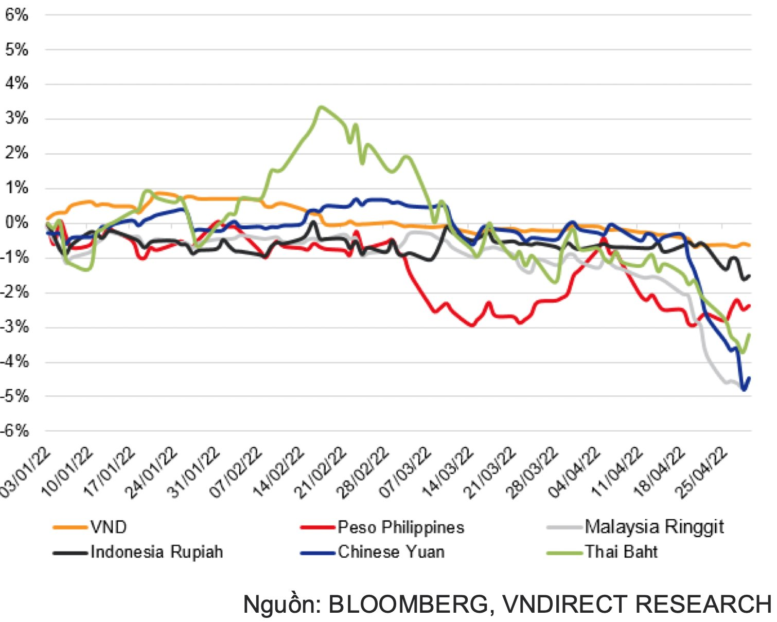 VND vượt trội hơn các đồng tiền khác trong khu vực. |