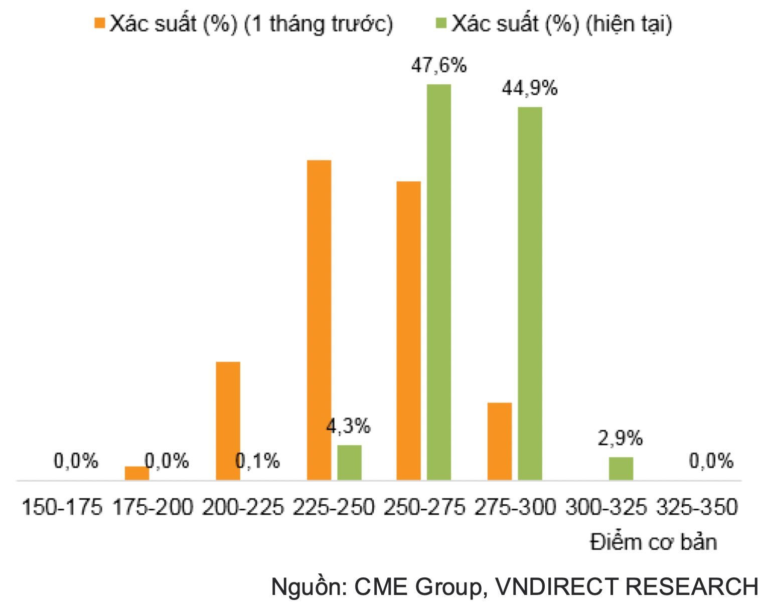 Tại cuộc họp gần đây nhất được tổ chức vào ngày 3-4/5/2022, Ủy ban Thị trường Mở Liên bang (FOMC) đã quyết định tăng lãi suất thêm 50 điểm cơ bản lên 0,75% đến 1,0%. Quyết định tăng lãi suất này đánh dấu mức tăng mạnh nhất được thực hiện trong một cuộc họp duy nhất kể từ tháng 5/2000. Các quan chức FED cũng gợi ý rằng họ sẽ tiếp tục tăng lãi suất điều hành trong năm nay với nỗ lực kiềm chế lạm phát. Theo khảo sát của CME Group, thị trường cho rằng FED có thể nâng lãi suất điều hành thêm 175 - 200 điểm cơ bản trong những tháng cuối năm 2022, lên biên độ mới trong khoảng 2,5% đến 3,0%.
