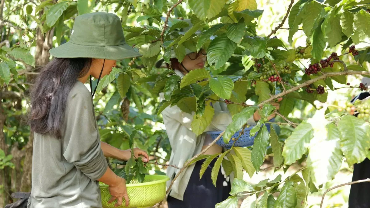 Người dân thu hoạch cà phê. Ảnh: Hiền Mai |