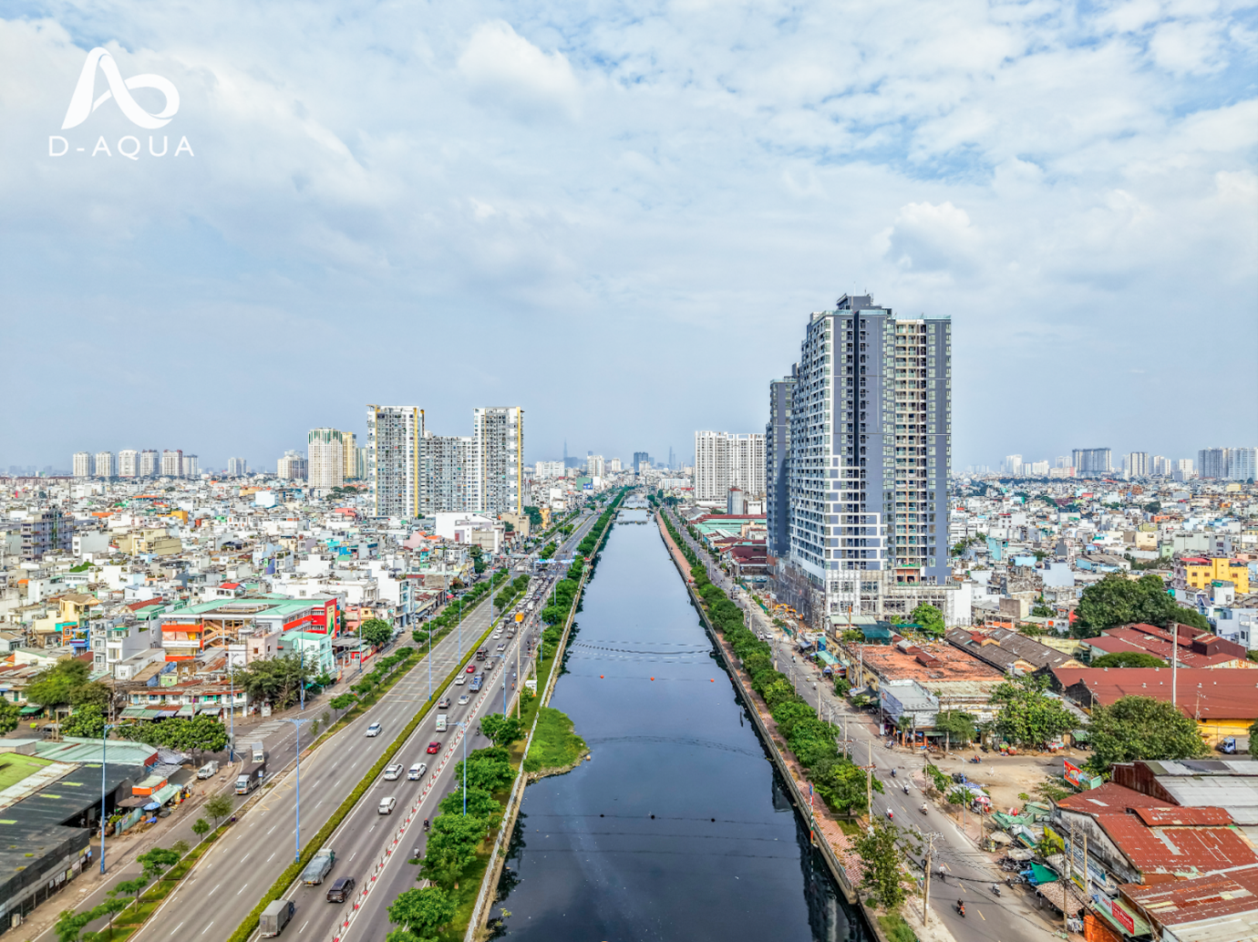 D-Aqua nằm trên mặt tiền đường Bến Bình Đông, ven kênh Tàu Hủ – Bến Nghé Canal – khu vực đang trải qua quá trình chỉnh trang đô thị và nâng cấp hạ tầng trong nhiều năm qua.