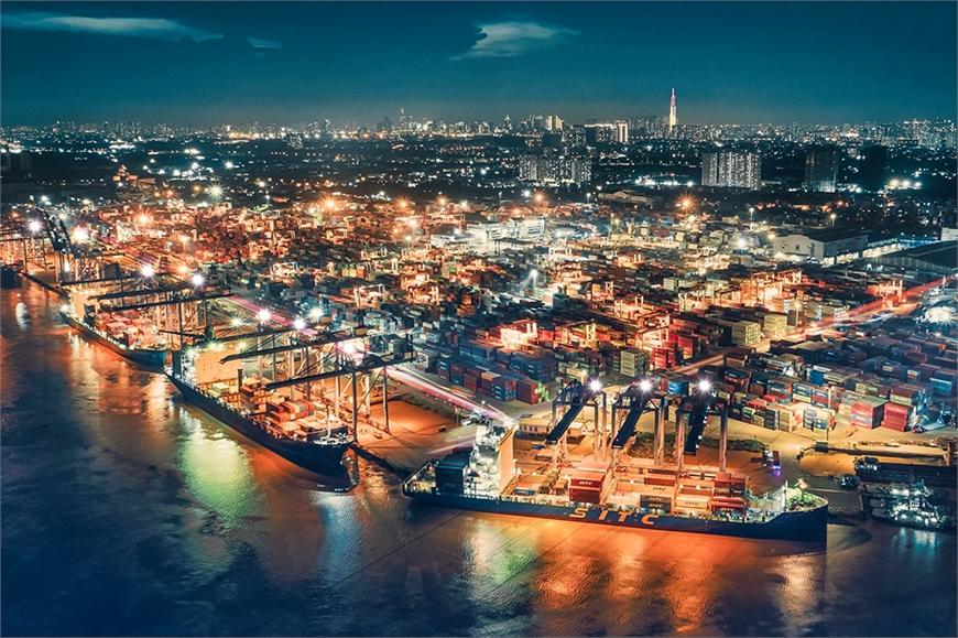 | Hoạt động ở cảng Tân Cảng - Cát Lái (TP Hồ Chí Minh) diễn ra suốt ngày đêm. |