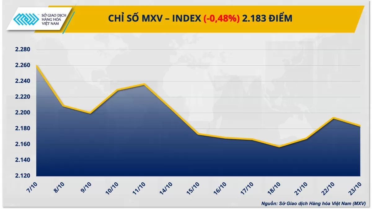 Theo Sở Giao dịch Hàng hóa Việt Nam (MXV), thị trường hàng hóa nguyên liệu thế giới diễn biến trái chiều trong phiên giao dịch ngày 23/10.