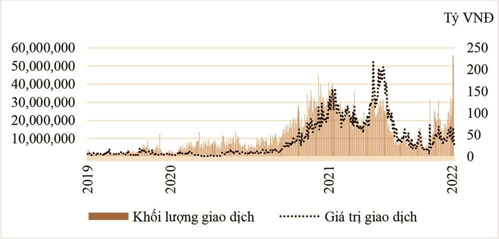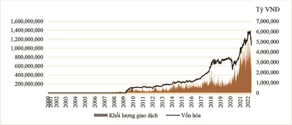 Thứ nhất, thị trường chứng khoán cơ sở hiện nay, cụ thể như thị trường cổ phiếu phát triển vượt bậc so với thời điểm bắt đầu thành lập vào tháng 7/2000, với khối lượng, giá trị từng phiên giao dịch, cũng như giá vốn hóa thị trường ngày càng tăng mạnh (Hình 8). Chính vì TTPS chịu ảnh hưởng nhất định bởi sự phát triển của TTCK cơ sở, với sự tăng trưởng về quy mô của TTCK cơ sở, TTPS Việt Nam có tiềm năng phát triển là rất lớn. Ngoài ra, sự ra đời của nhiều sản phẩm phái sinh trong thời gian tới là điều tất yếu, bởi thị trường cơ sở phát triển kéo theo nhu cầu phòng vệ rủi ro trước những biến động lớn của thị trường. Đặc biệt trong các giai đoạn bùng phát đại dịch COVID-19 vừa qua, các nhà đầu tư trên TTCK cũng phải chịu nhiều tổn thất không nhỏ khi thị trường có nhiều biến động mạnh.