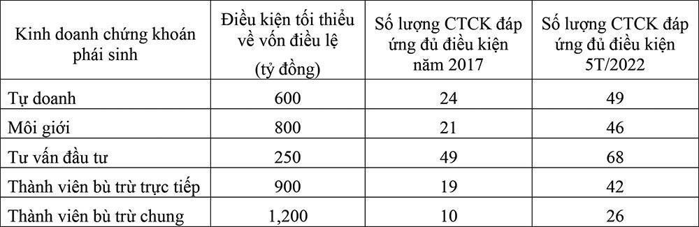 Bảng 1: Thống kê số lượng CTCK đủ điều kiện thực hiện nghiệp vụ phái sinh