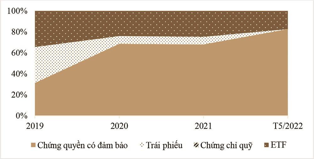 Hình 6: Tăng trưởng kinh doanh Chứng quyền có đảm bảo tại Việt Nam giai đoạn 2017-T5/2022