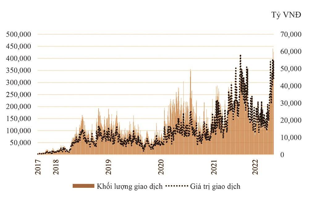 Giao dịch phái sinh bắt đầu ở thị trường Việt Nam vào năm 2017 với sự ra đời lần lượt của hai sản phẩm phái sinh là HĐTL và chứng quyền có bảo đảm. Kể từ đó, TTCKPS ở Việt Nam đã chứng kiến sự tăng trưởng vượt bậc cả về giá trị giao dịch và số lượng hợp đồng được giao dịch.