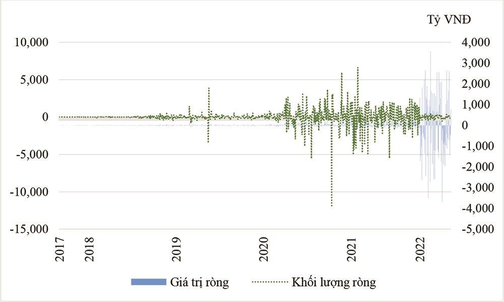 Hình 3: Giao dịch nhà đầu tư nước ngoài đối với HĐTL chỉ số giai đoạn 2017-T5/2022