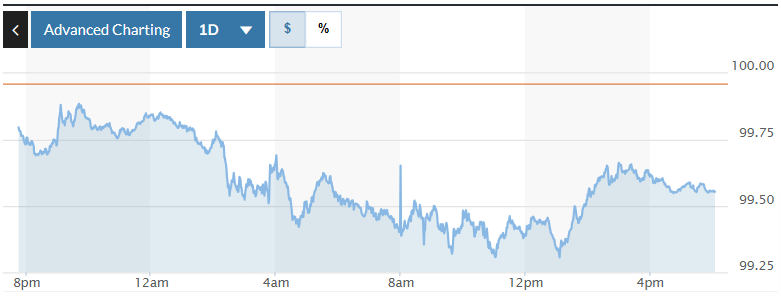 Biểu đồ biến động Chỉ số DXY trong 24 giờ qua. Ảnh: Market watch