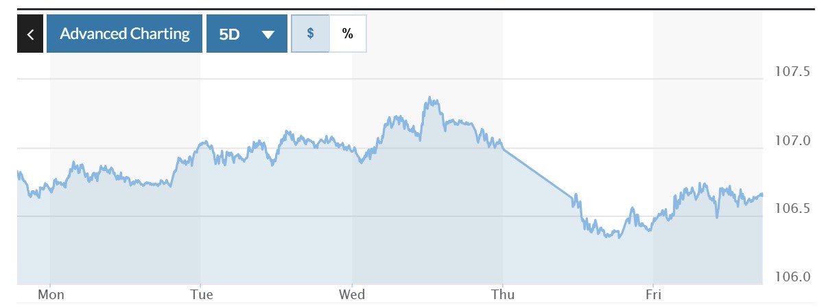 Chỉ số USD Index (DXY), đo lường biến động đồng bạc xanh với 6 đồng tiền chủ chốt đứng ở mức 106,64.