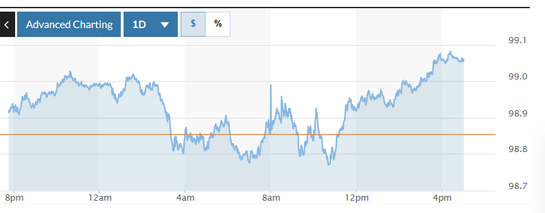 Biểu đồ biến động Chỉ số DXY trong 24 giờ qua. Ảnh: Marketwatch |