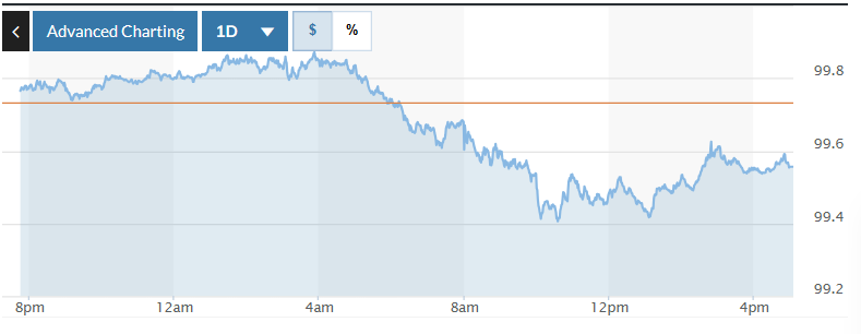 Trong khi đó, trên thị trường Mỹ, chỉ số US Dollar Index (DXY) đo lường biến động đồng bạc xanh với 6 đồng tiền chủ chốt (EUR, JPY, GBP, CAD, SEK, CHF) giảm 0,18%, hiện ở mức 99,56.