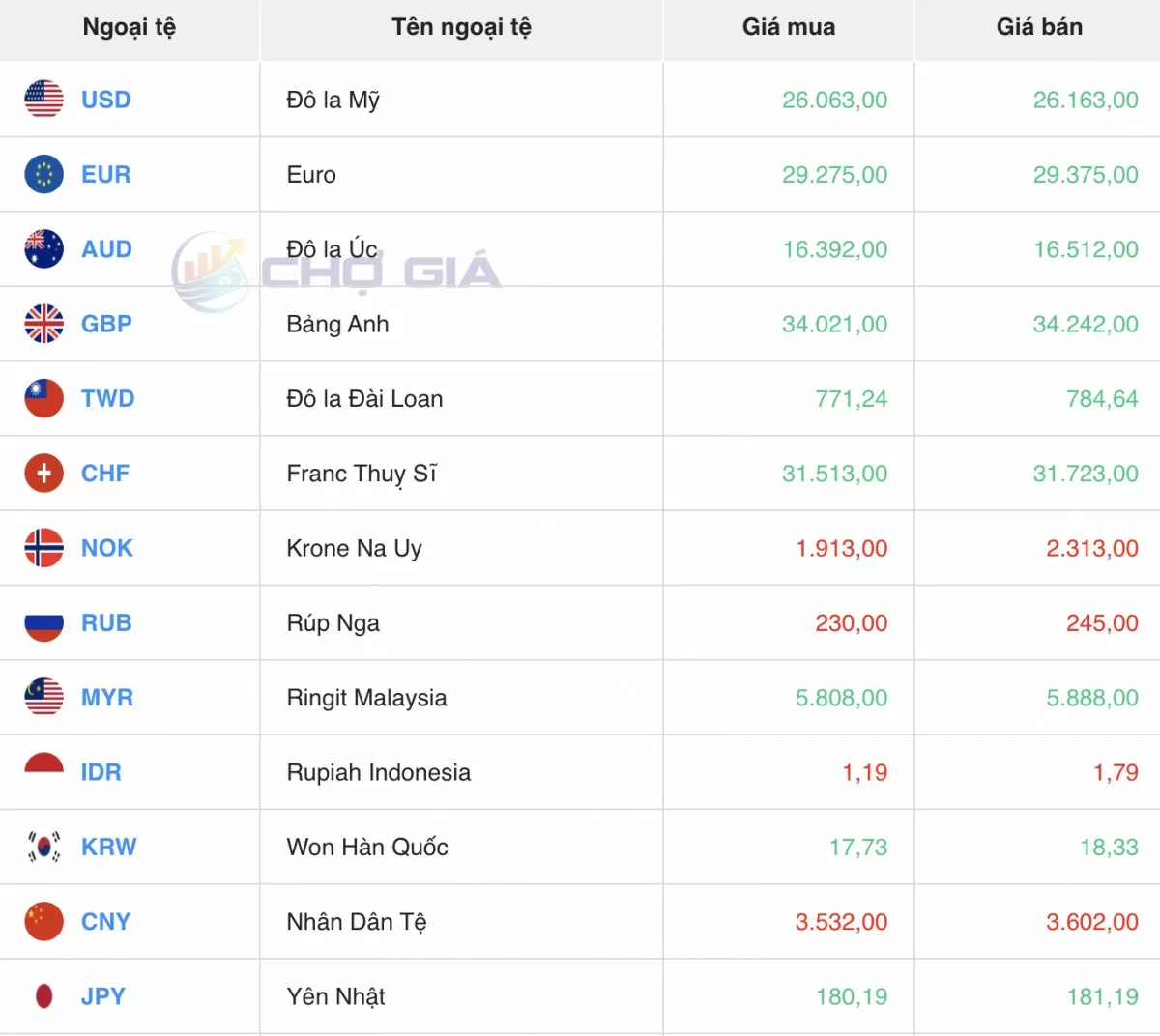 | Franc Thụy Sỹ | CHF | 31,268 | 31,365 | 32,248 |
