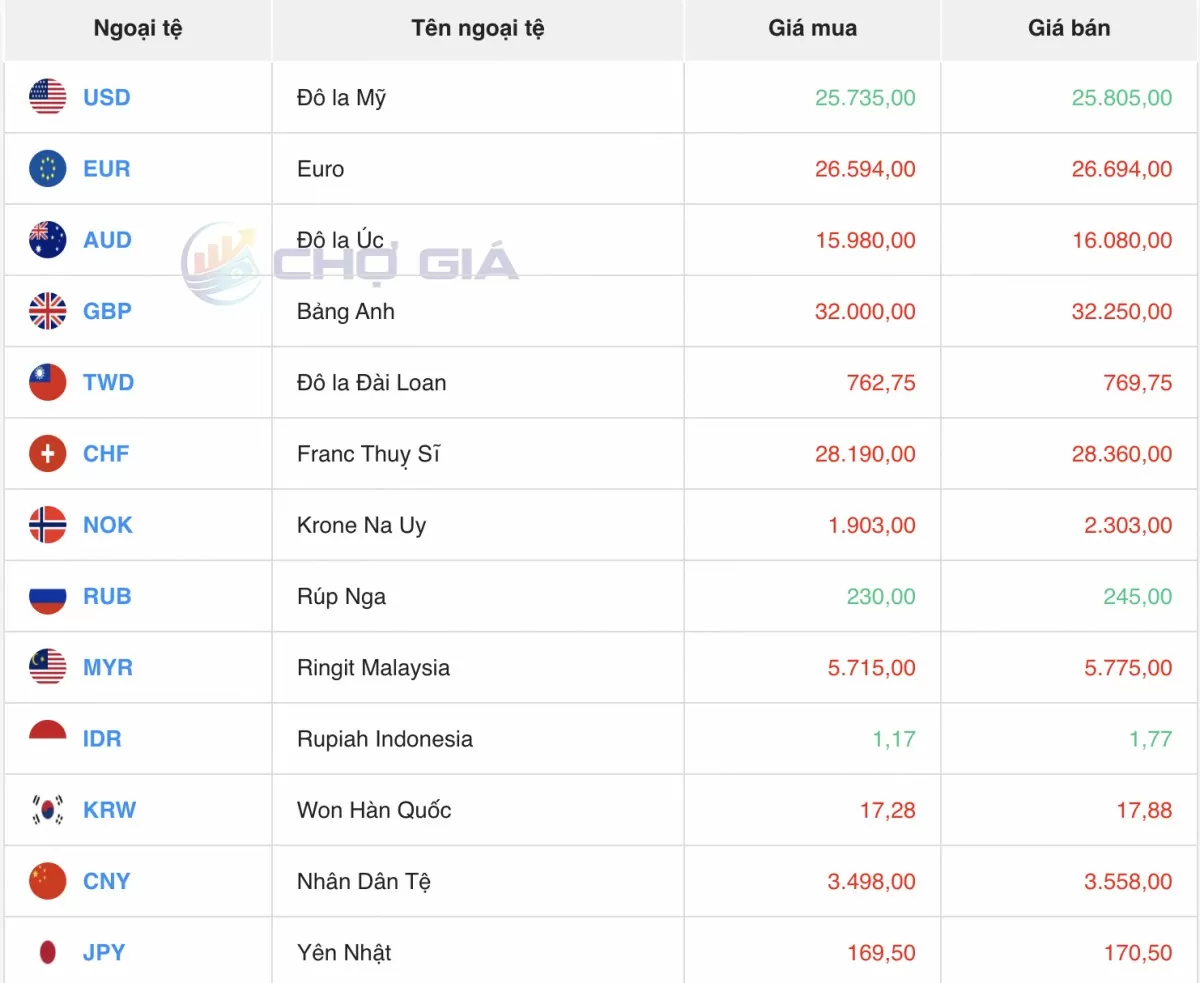 Dollar Mỹ | USD | 25,375 | 25,375 | 25,735 |