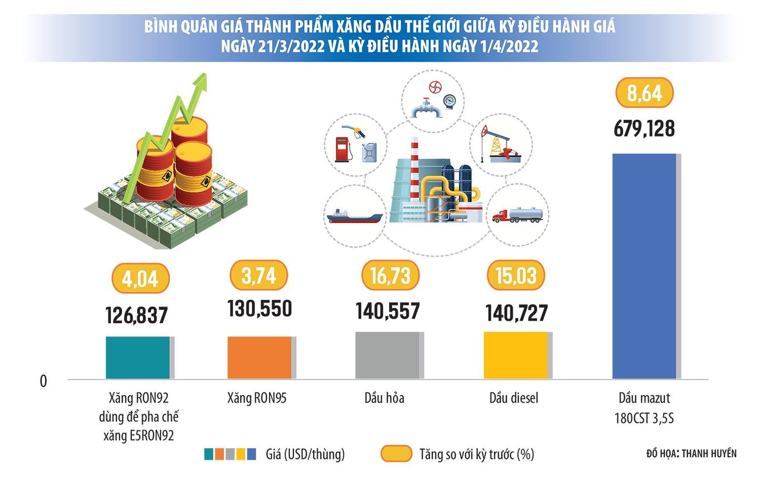 Số liệu do Tổng cục Thống kê công bố cho thấy, quý I/2022, cả nước nhập 2,65 triệu tấn xăng dầu, trị giá 2,374 tỷ USD, tăng 31,6% về lượng, nhưng tăng tới 129,4% về trị giá so với cùng kỳ năm 2020 (tương đương mức chi ngoại tệ tăng thêm hơn 1 tỷ USD) và bằng khoảng 50% giá trị nhập khẩu trong cả năm 2021.