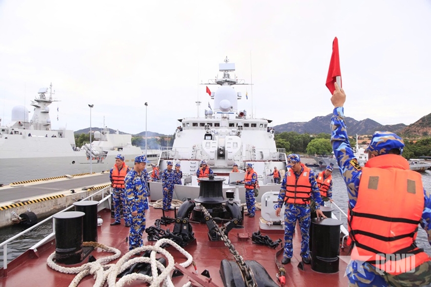 Các thao tác vận hành tàu mặt nước chiến đấu của đơn vị. Ảnh: LÊ NGỌC |