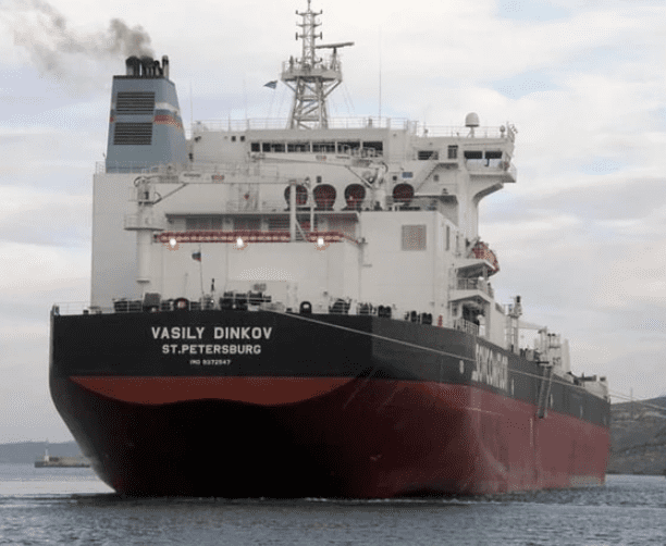 Vasily Dinkov, một tàu chở dầu phá băng chuyên dụng, đang di chuyển dọc theo tuyến đường Biển Bắc sau khi nhận dầu thô vào cuối tháng trước từ một tàu chở dầu neo đậu tại Murmansk, theo dữ liệu theo dõi tàu của Bloomberg.