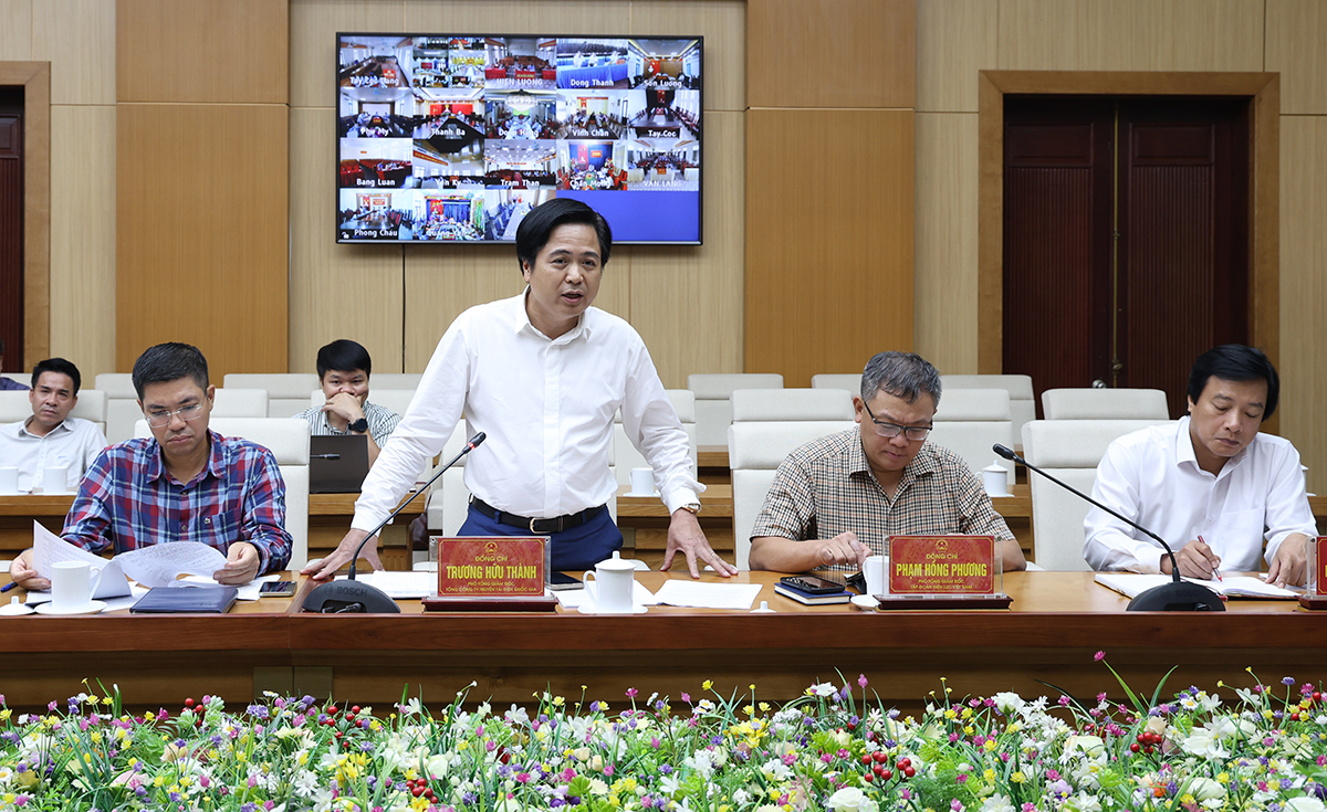 Phó Tổng giám đốc EVNNPT Trương Hữu Thành nêu các kiến nghị tại buổi làm việc