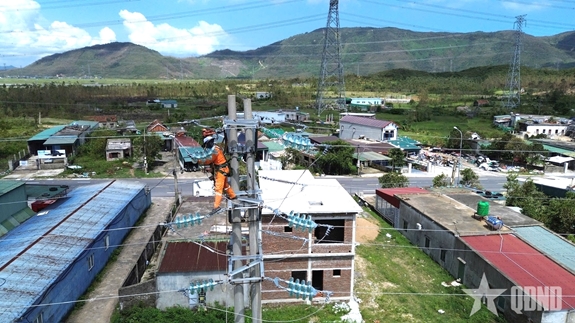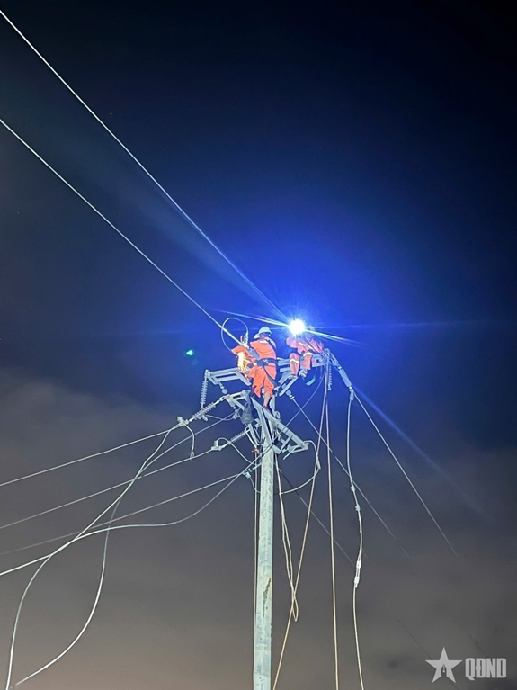 Xuyên đêm khắc phục hệ thống điện do ảnh hưởng mưa bão. |