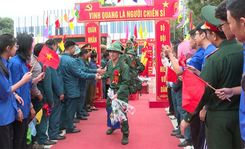 Thanh niên huyện Tuần Giáo, tỉnh Điện Biên lên đường nhập ngũ năm 2024. |