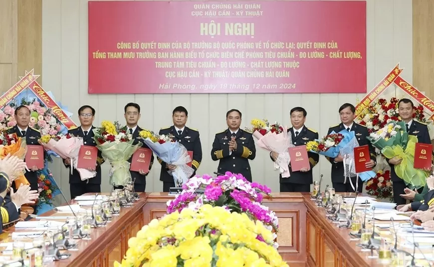 Sáng 19/12, tại TP. Hải Phòng, Cục Hậu cần - Kỹ thuật tổ chức Hội nghị công bố quyết định của Bộ trưởng Bộ Quốc phòng về tổ chức lại; quyết định của Tổng Tham mưu trưởng Quân đội nhân dân Việt Nam ban hành biểu tổ chức biên chế Phòng Tiêu chuẩn - Đo lường - Chất lượng, Trung tâm Tiêu chuẩn - Đo lường - Chất lượng thuộc Cục Hậu cần- Kỹ thuật, Quân chủng Hải quân.