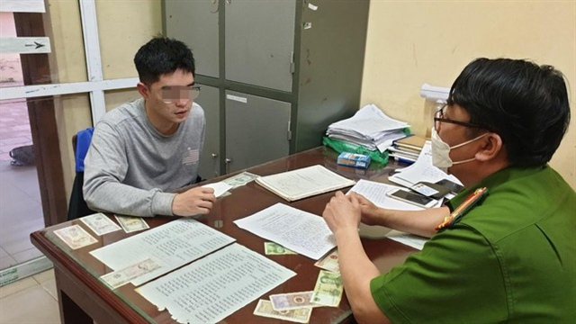 ![]() Tuấn Anh tại cơ quan công an. Ảnh Công an Thái Nguyên. |