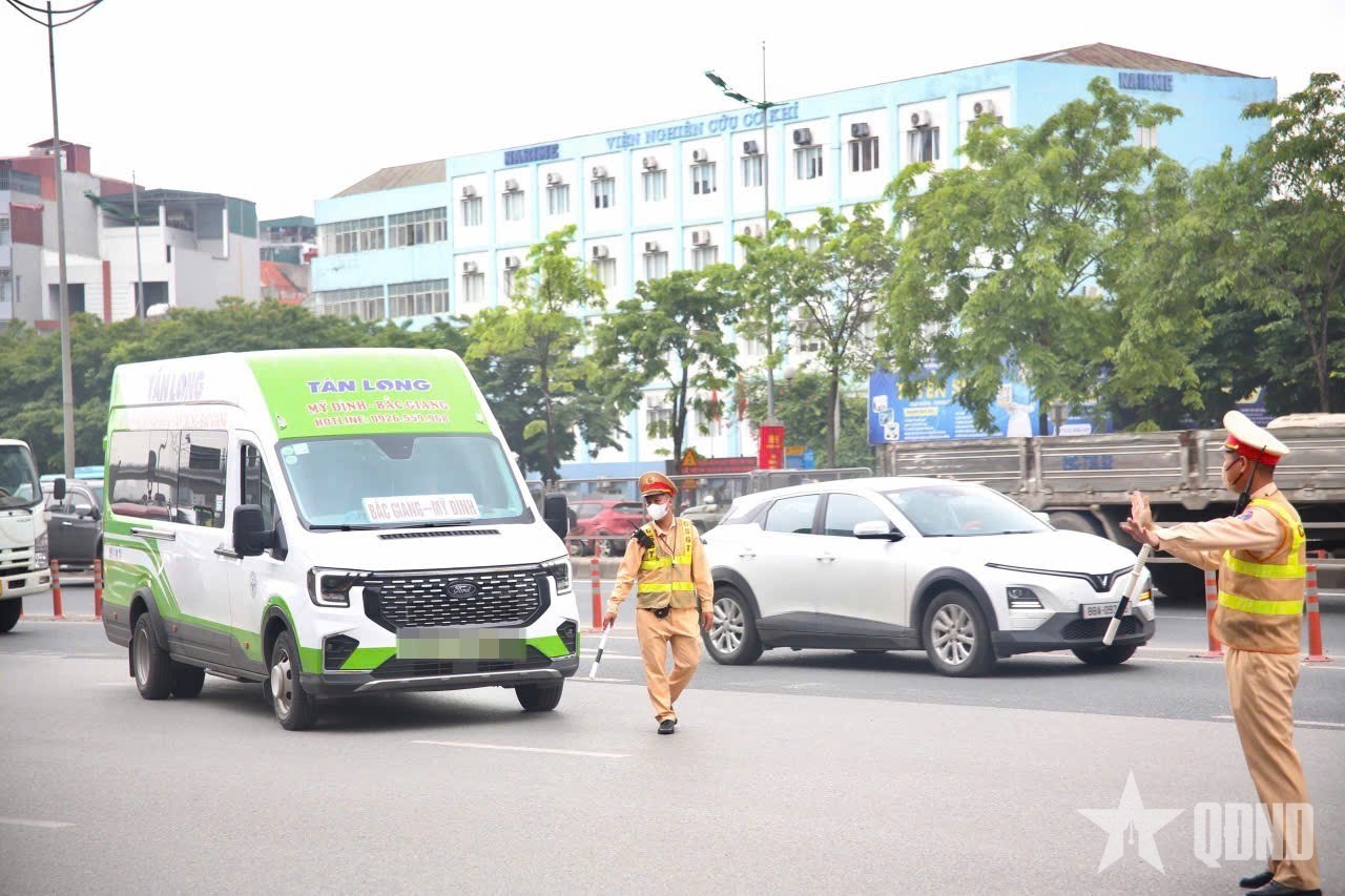 Đội Cảnh sát giao thông (CSGT) đường bộ số 6 (Phòng CSGT Công an TP Hà Nội) bố trí cán bộ ghi hình, xử lý loạt xe khách dừng đỗ sai quy định quanh khu vực bến xe Mỹ Đình, bảo đảm an toàn giao thông.