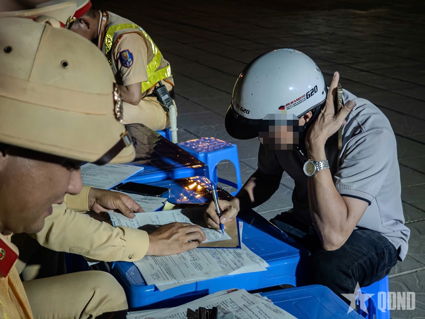 Hà Nội: Cảnh sát giao thông xử lý các trường hợp vi phạm nồng độ cồn trong đêm