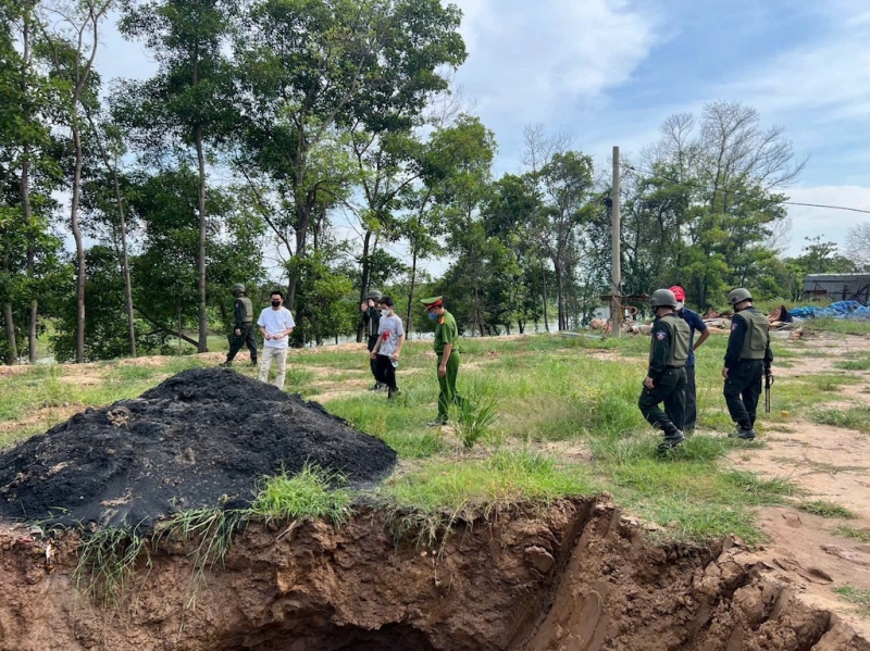 Công an TP Hà Nội phối hợp với Cục Cảnh sát phòng, chống tội phạm về môi trường xử lý vụ việc chôn, lấp chất thải công nghiệp với số lượng lớn tại xã Sóc Sơn. Ảnh do đơn vị cung cấp |