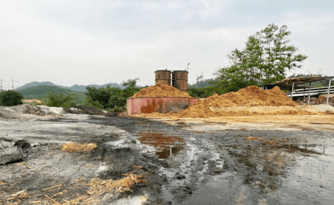 Xưởng sản xuất bột giấy của Công ty Khánh Nam xây dựng trái phép bị yêu cầu tháo dỡ. Ảnh: VT |