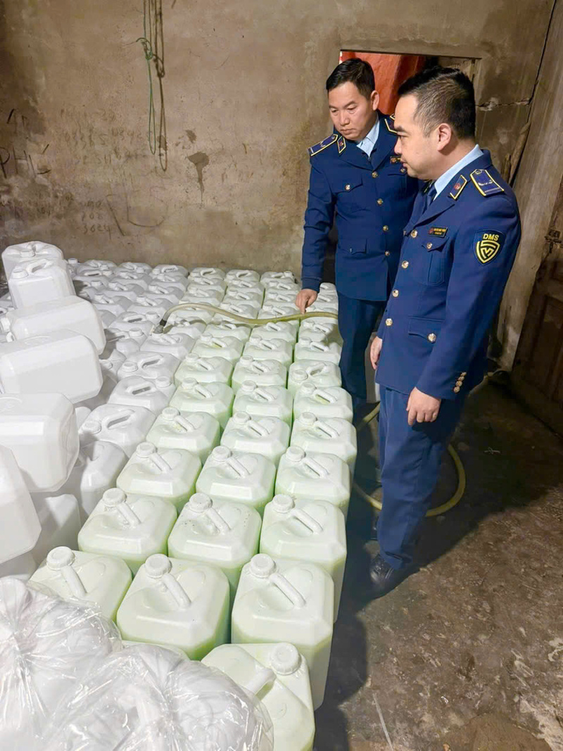 Quản lý thị trường Lào Cai kiểm tra, xử lý nhiều vụ việc liên quan rượu không rõ nguồn gốc. Ảnh: Hải Linh